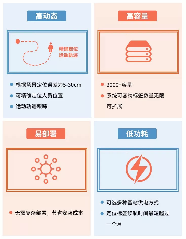 在眾多定位技術中,UWB技術具有傳輸速率高,發(fā)射功率低,傳統能力強等特點,無論是從定位精度、實時性,還是穩(wěn)定性、容量大小等方面,UWB技術都完美的符合工業(yè)安全對定位技術的需求。工業(yè)場景的安全定位服務,主要針對的是人員與設備,相比其他技術,UWB更加適用。