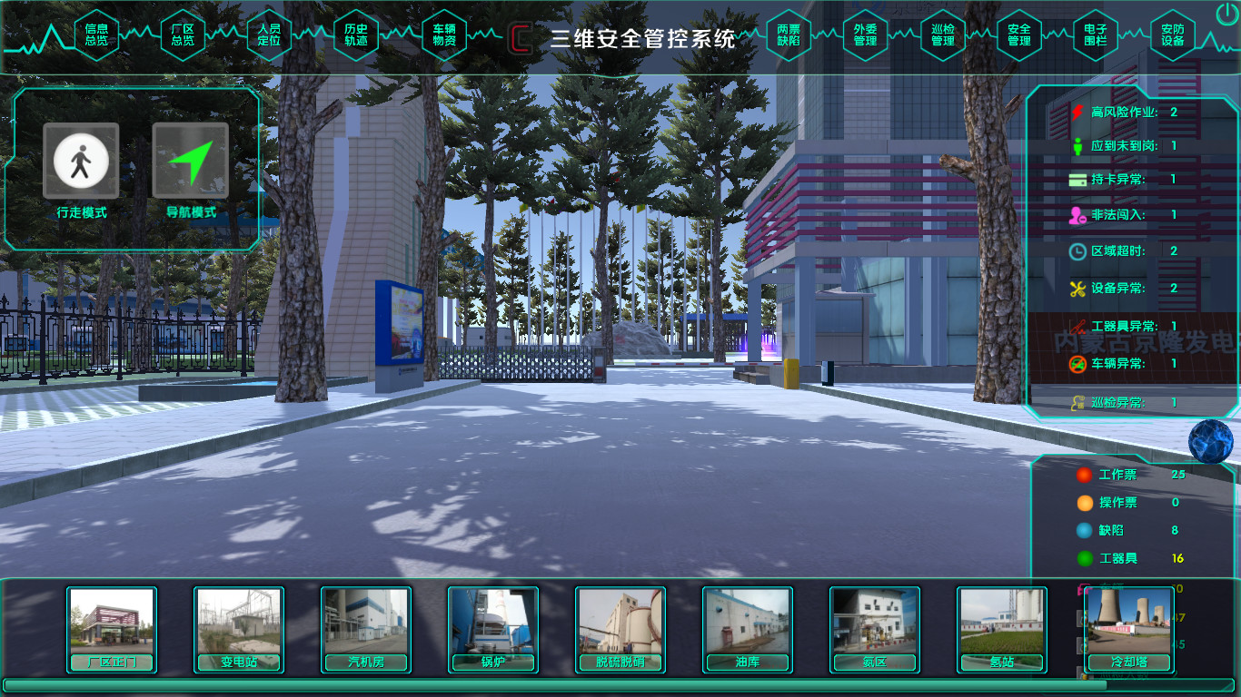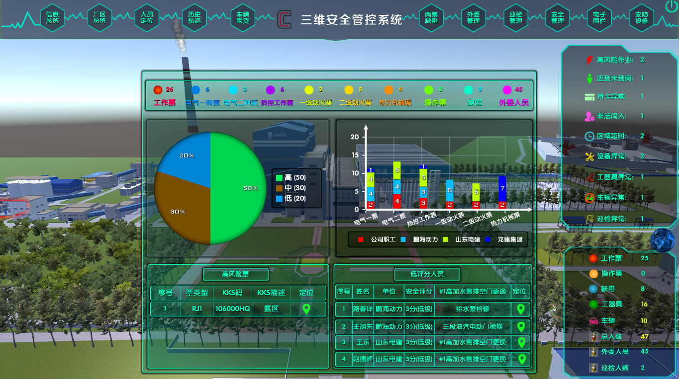 人員安全主要體現在兩點:空間內行為安全以及作業過程安全。空間內行為安全的解決辦法應用到的就是目前比較熱門的技術:UWB室內定位技術。人員定位技術之所以能夠在安全管理上起到關鍵作用,主要在于實時的定位能夠精確定位人員在空間內的位置,而UWB技術的精度可以達到10cm。以云酷科技的三維可視化人員定位管理系統為例,其主要能夠實現的功能:員工攜帶信息唯一的定位標簽,通過電子標簽和定位設備之間不斷測距,實時定位并顯示在二維/三維地圖上,當人員遇到突發情況時,可以通過電子標簽進行報警。同時根據標簽的唯一性,在系統中輸入人員信息就可以查詢當前位置,還可以查詢到人員一定時間內的歷史活動軌跡。在此基礎之上系統會自動統計各外包隊伍出勤率,及人員出勤天數供管理人員查看。系統把整個廠區劃分為N個作業區域,根據作業區域安全風險的高低做出相應的等級劃分,便于重點區域重點監控。根據各人員的工作崗位和工作內容進行區域授權,對人員闖入未授權區域系統立即報警。同時系統會接入ERP中的兩票、缺陷信息,根據兩票、缺陷信息中的區域位置及設備的KKS編碼,把兩票、缺陷作業劃分到相應的區域中,實現兩票、缺陷及作業人員分區域列表展現和三維展現,方便查看與管理。定位系統自動記錄巡點檢人員的巡點檢時長、巡點檢次數并與預設的巡點檢路線進行比對,自動統計分析巡點檢人員的到位率與偏差等。對于巡點檢人員偏離巡點檢路線及漏檢等及時短信與APP推送報警信息。密閉空間作業屬于高風險作業,安全風險較高。針對密閉空間作業的環境特點,采用電池供電的移動式定位設備臨時固定在密閉空間內,天線放置在密閉空間外,確保定位無線信號傳輸的可靠性。人員攜帶定位標簽進入密閉空間系統可實時監督密閉空間內人員數量。同時可加設便攜式無線攝像頭,以便實時監控作業人員。高空作業、大型設備吊裝及腳手架搭設過程中容易出現安全事故,如未掛安全帶墜落,交叉作業、高空落物等風險,這類亦屬于高風險作業。在作業前假設臨時虛擬電子圍欄,防止無關人員進入工作區,同時利用圖形識別技術檢測是否正確佩戴安全帽和安全帶,發現異常立即報警。系統支持接入電廠視頻監控系統,在三維電子地圖上顯示視頻監控位置,任意切換調取視頻監控。可實現快速查找、單點回放、圖像識別等功能。同時可基于人員當前位置自動調取對應的視頻監控,對人員行走到其他位置自動切換到相應監控畫面。對于發生異常的情況,可基于人員歷史軌跡不同位置及不同時段調取相應位置相應時間段的歷史視頻監控,與歷史軌跡聯動播放,方便事故分析及責任劃定。另外系統接入現有門禁系統,通過動態授權實現門禁的智能聯防。智能門禁聯防實時顯示各個門禁的開關及工作狀態,還可以查詢門禁刷卡記錄,并根據進入記錄統計各區域內人員數量及名單。通過多功能、多角度的定位管理,人員定位管理系統可以大幅度提高電廠人員安全,為智慧電廠的安全建設提供真正的智慧安全。當然除了空間內安全的人員定位,智慧電廠的安全建設還需要員工作業安全的體系完善。